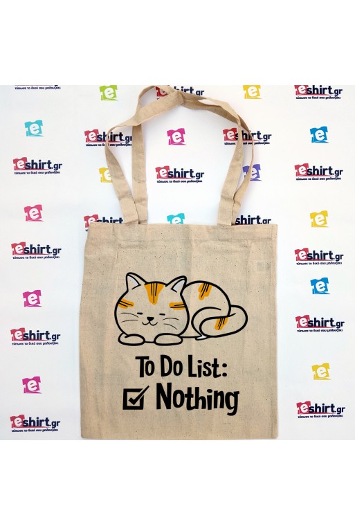 Υφασμάτινη tote bag με τη φράση “To Do List: Nothing” και σκίτσο από ένα χαλαρό γατί
